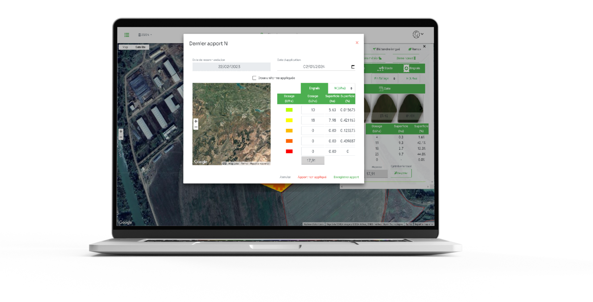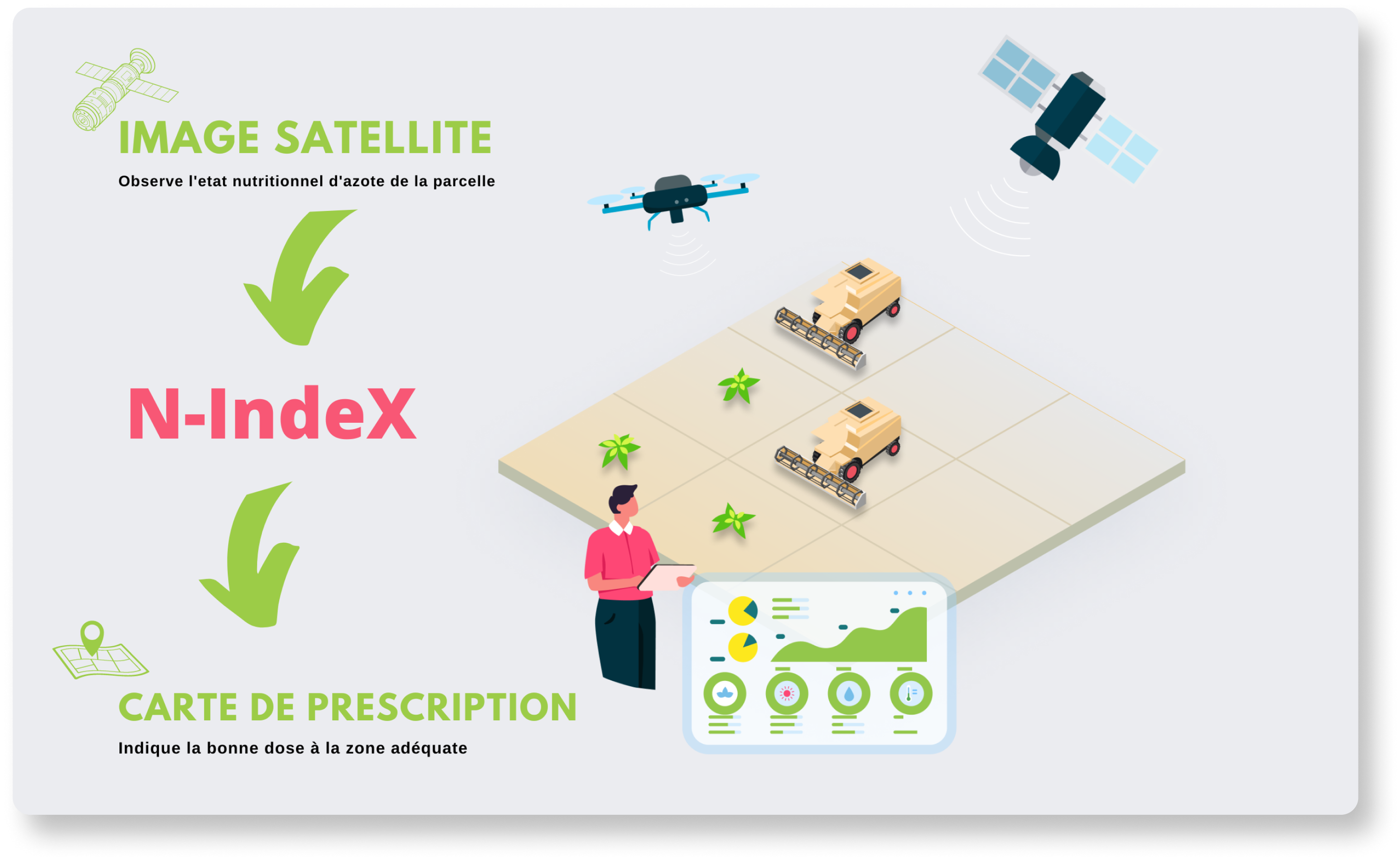 S'appuie sur un modèle hybride en se basant sur l'imagerie satellite pour recommander la dose de N
