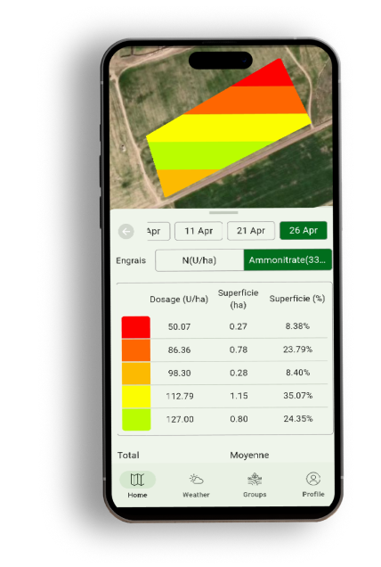 FertiX détermine l’hétérogénéité intraparcellaire pour une application précise des engrais. Elle utilise des images satellitaires pour identifier le besoin précis en NPK de chaque zone de la parcelle.